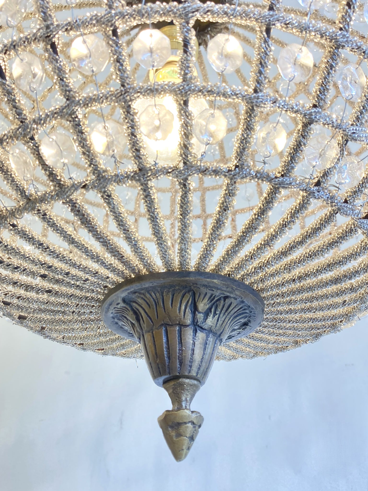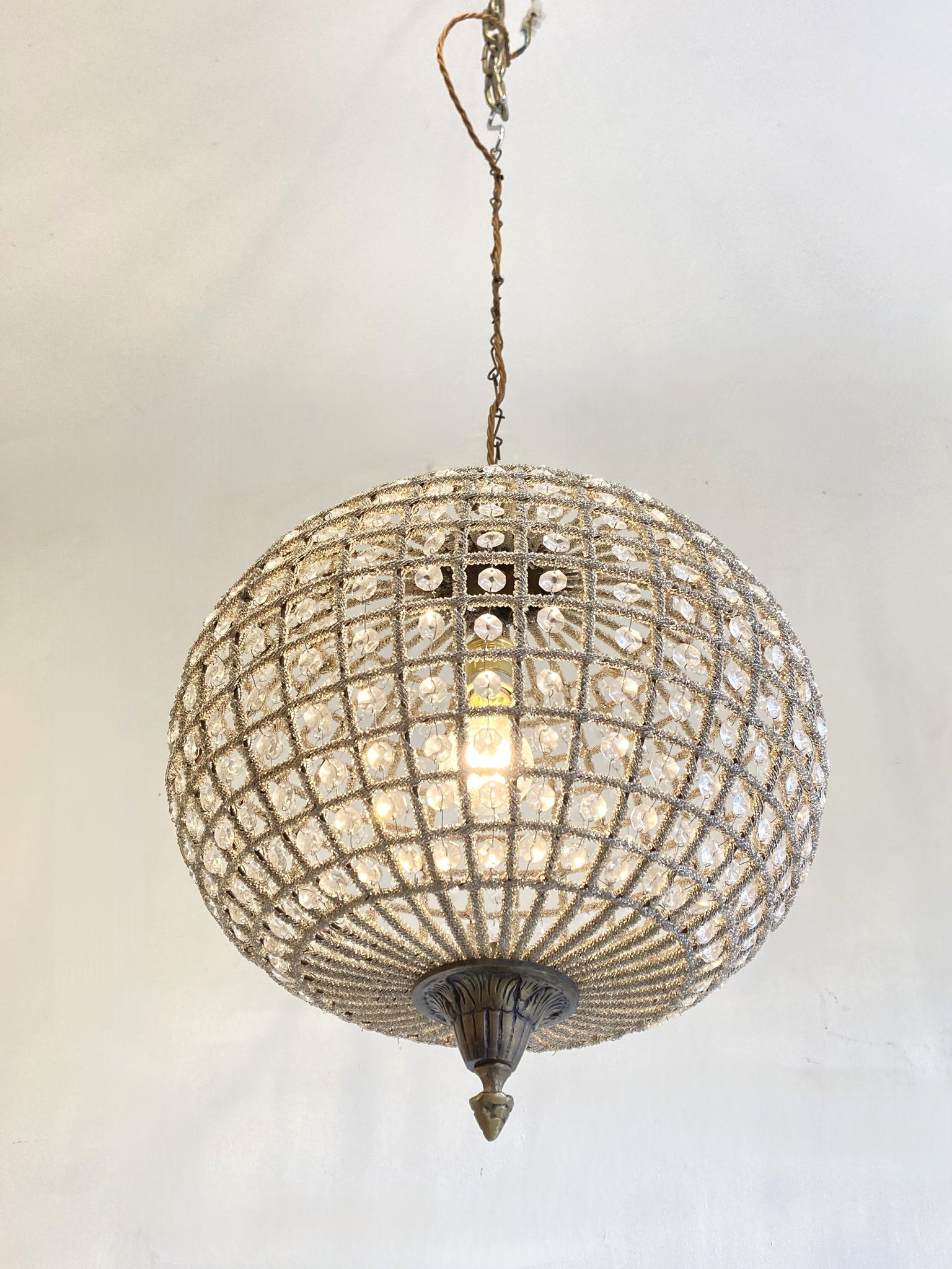 This light has been been newly hand-made by the craftsmen who restore our vintage chandeliers; the parts have been cast from antique & vintage lights and the quality is fantastic. This ball light has individually buttoned cells encased in twisted glass beads which diffuses the light beautifully and looks amazing when the light is dimmed.