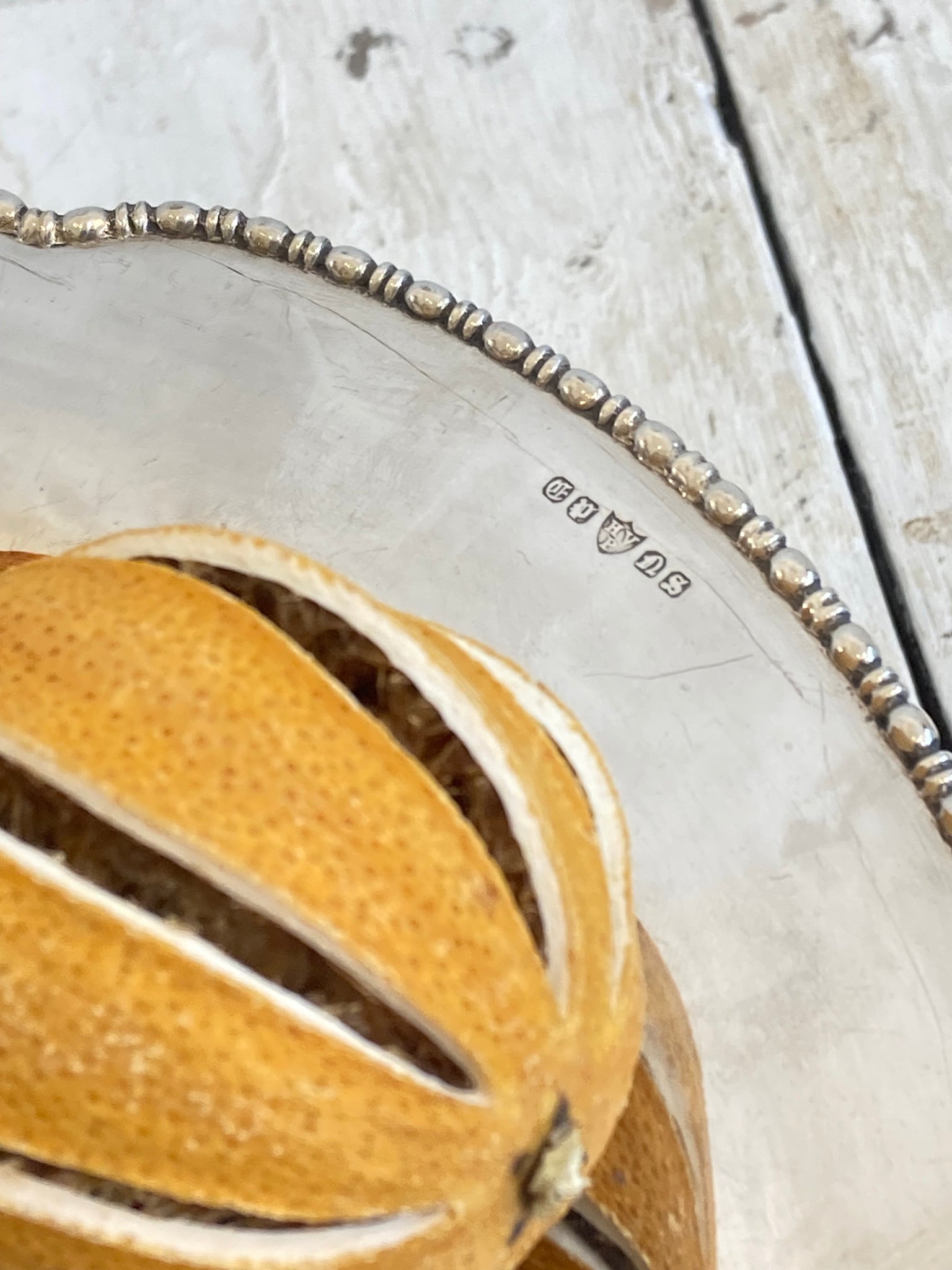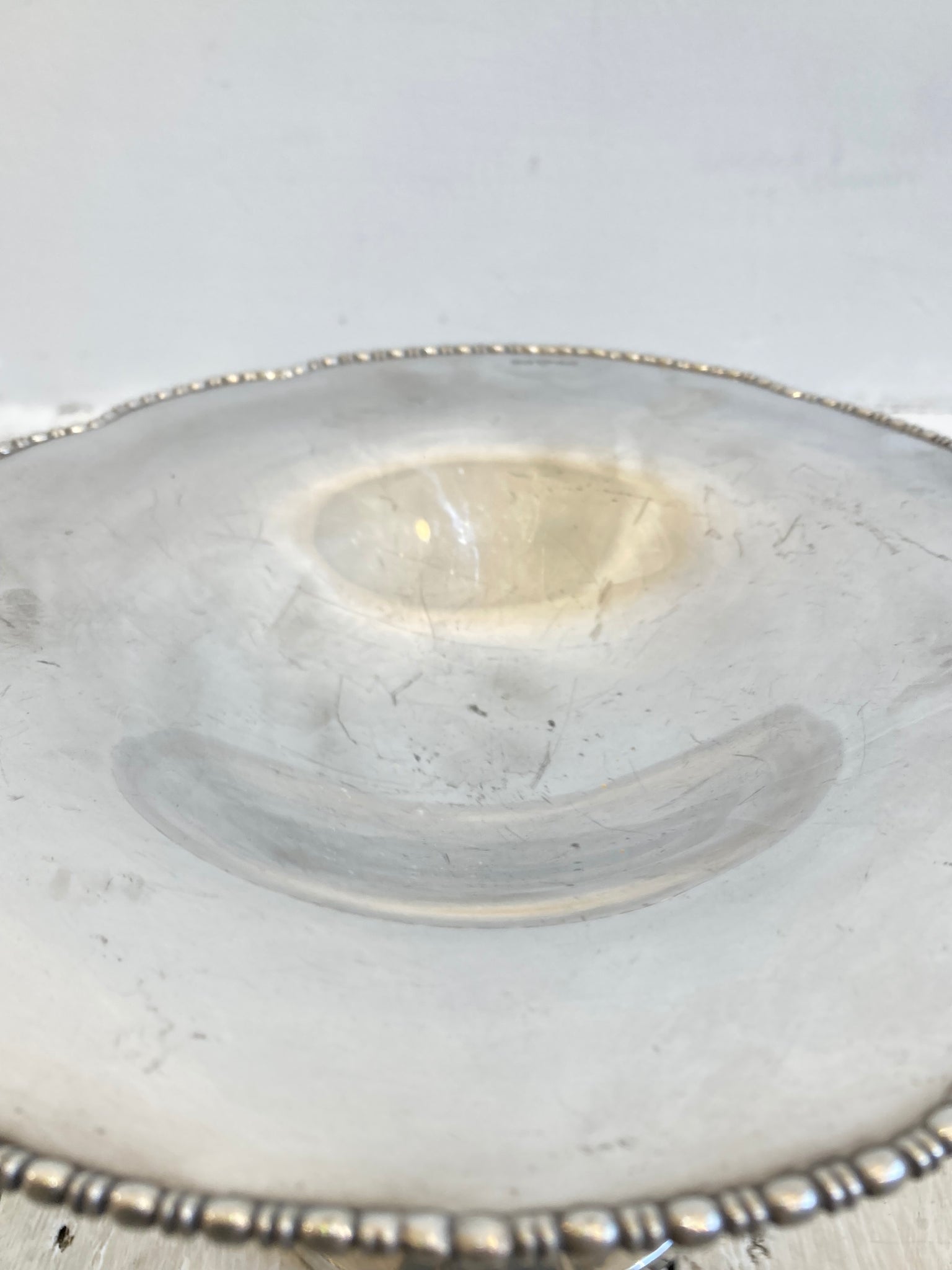 Decorated with a simple beaded design around the rim which has a slighty frilly shape - very pretty.