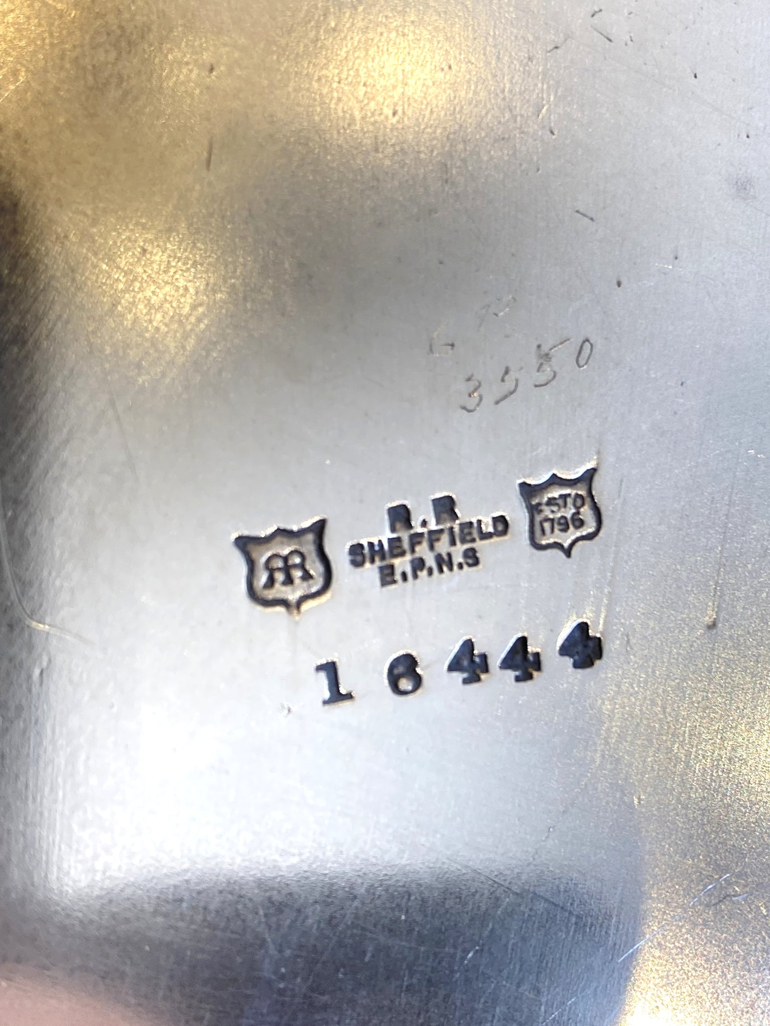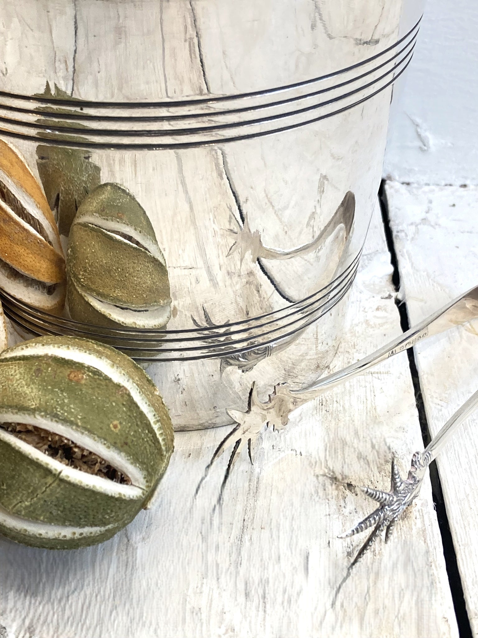 A stylish early 1900's silver plated ice bucket with swing handle and simple banded decoration. The base is stamped RR for the maker Richard Richardson which stopped production in 1924 so this would pre-date then along with the registered design number. The silver plate is in good condition - there's some pitting on the bottom inside as shown. Fabulous for a cocktail trolley or home bar.