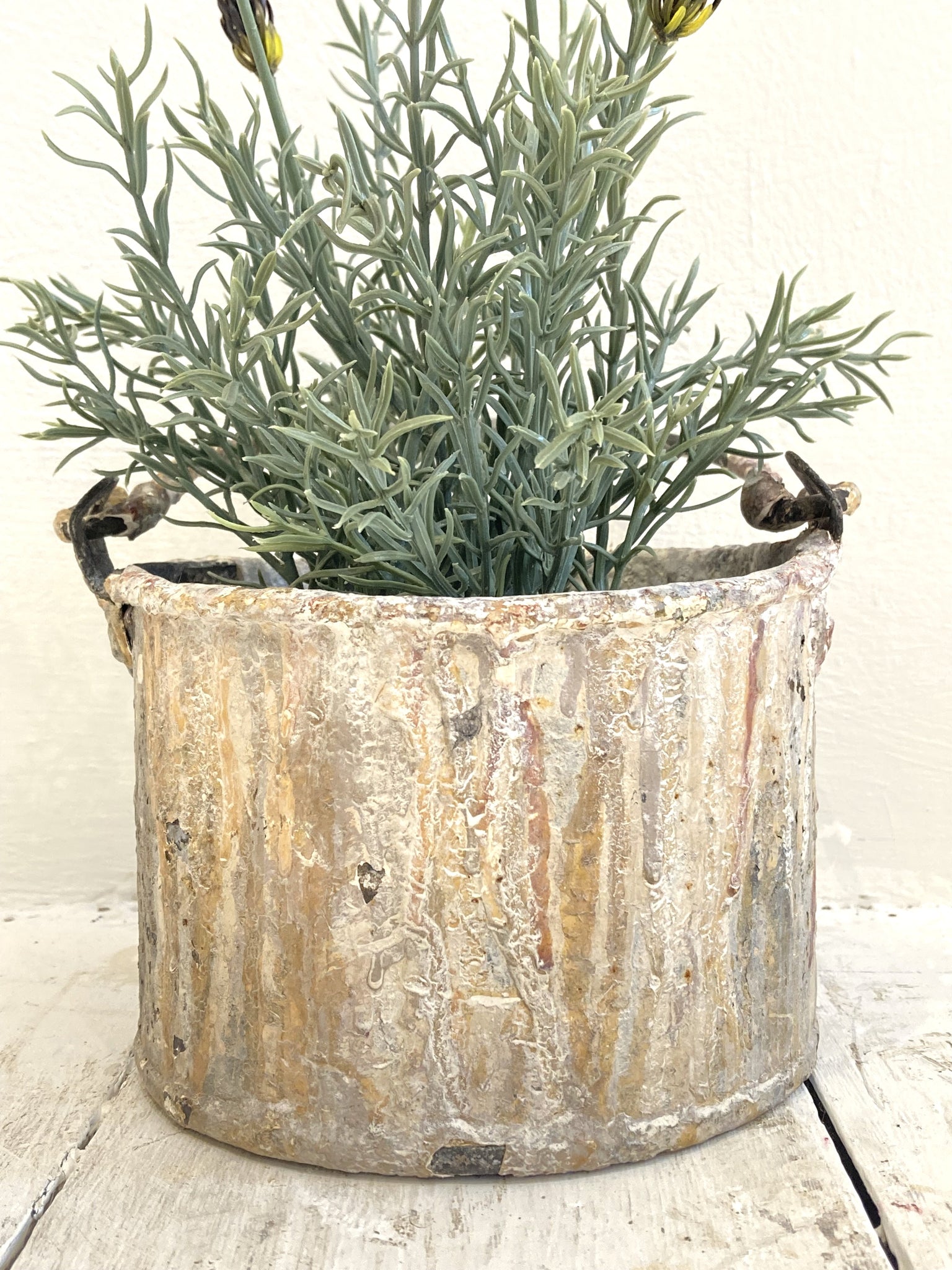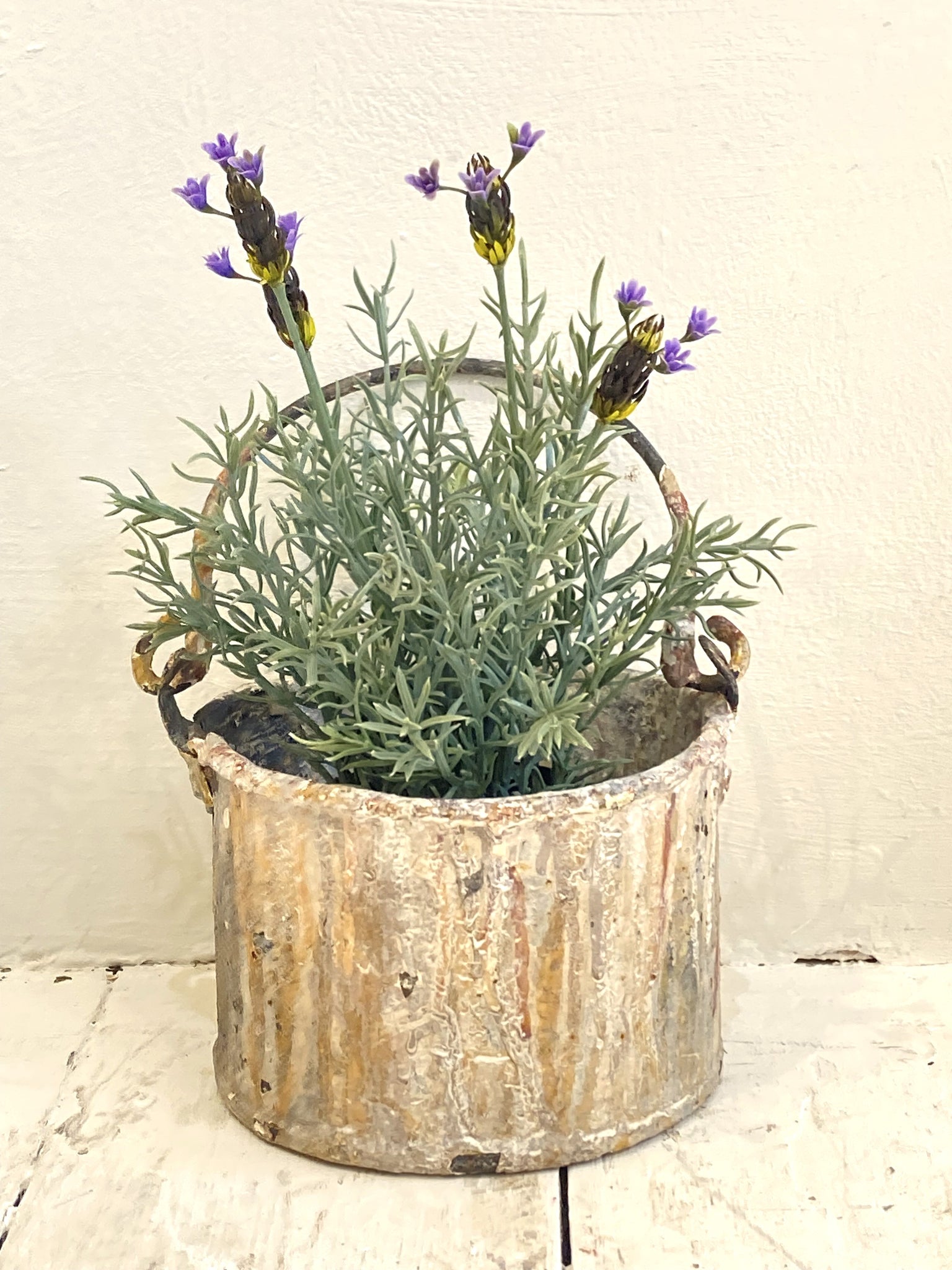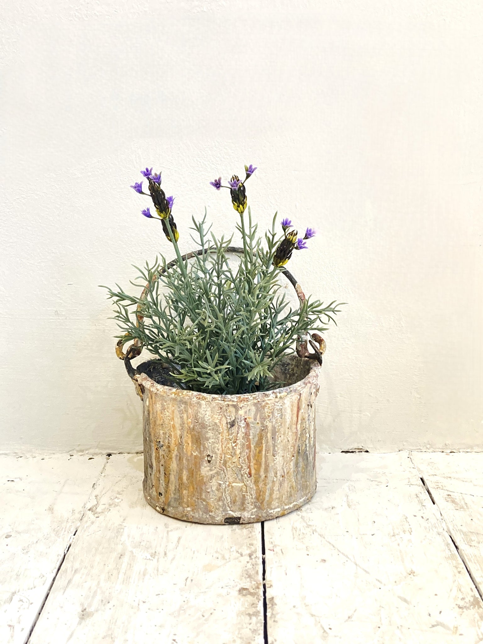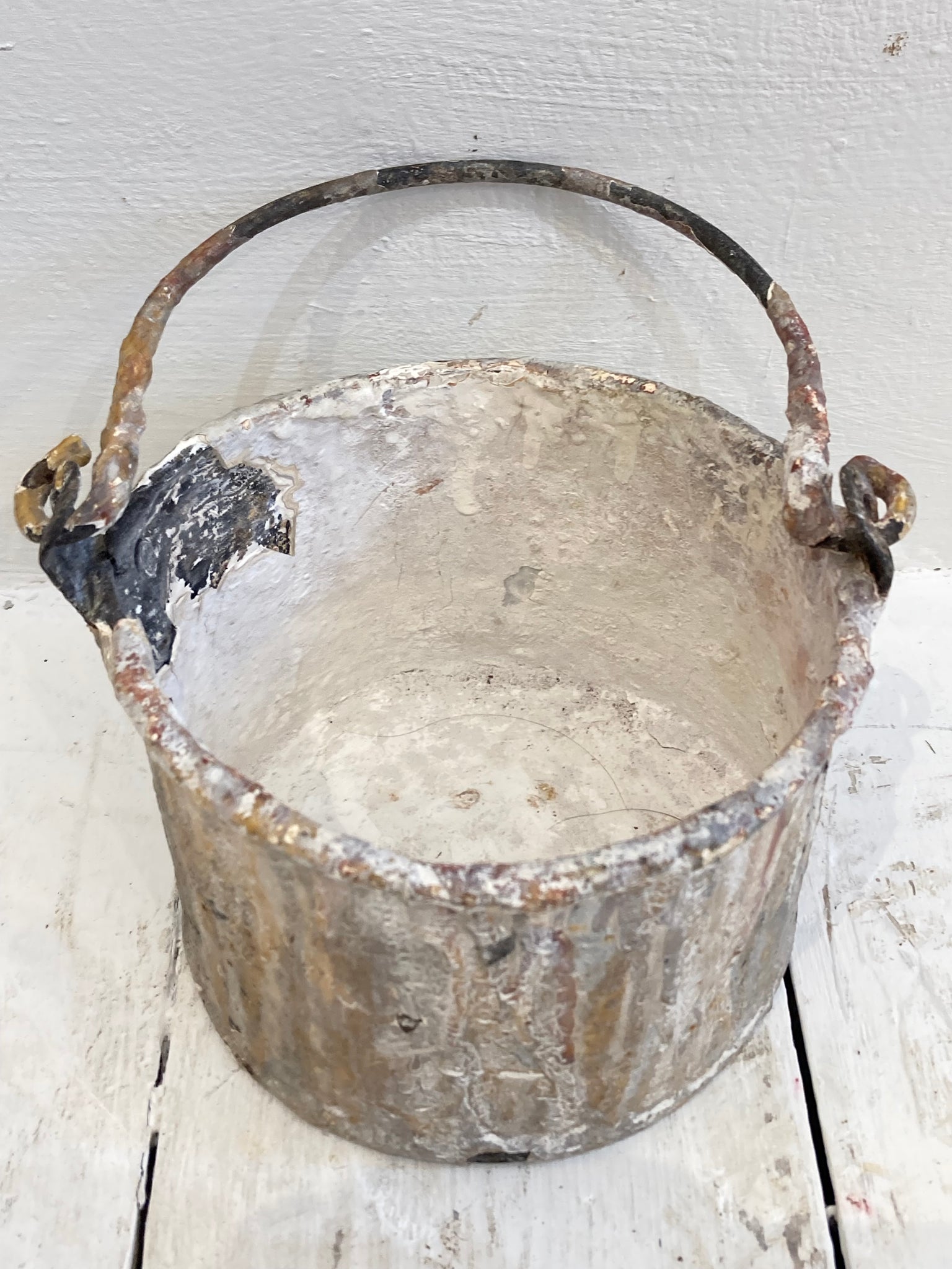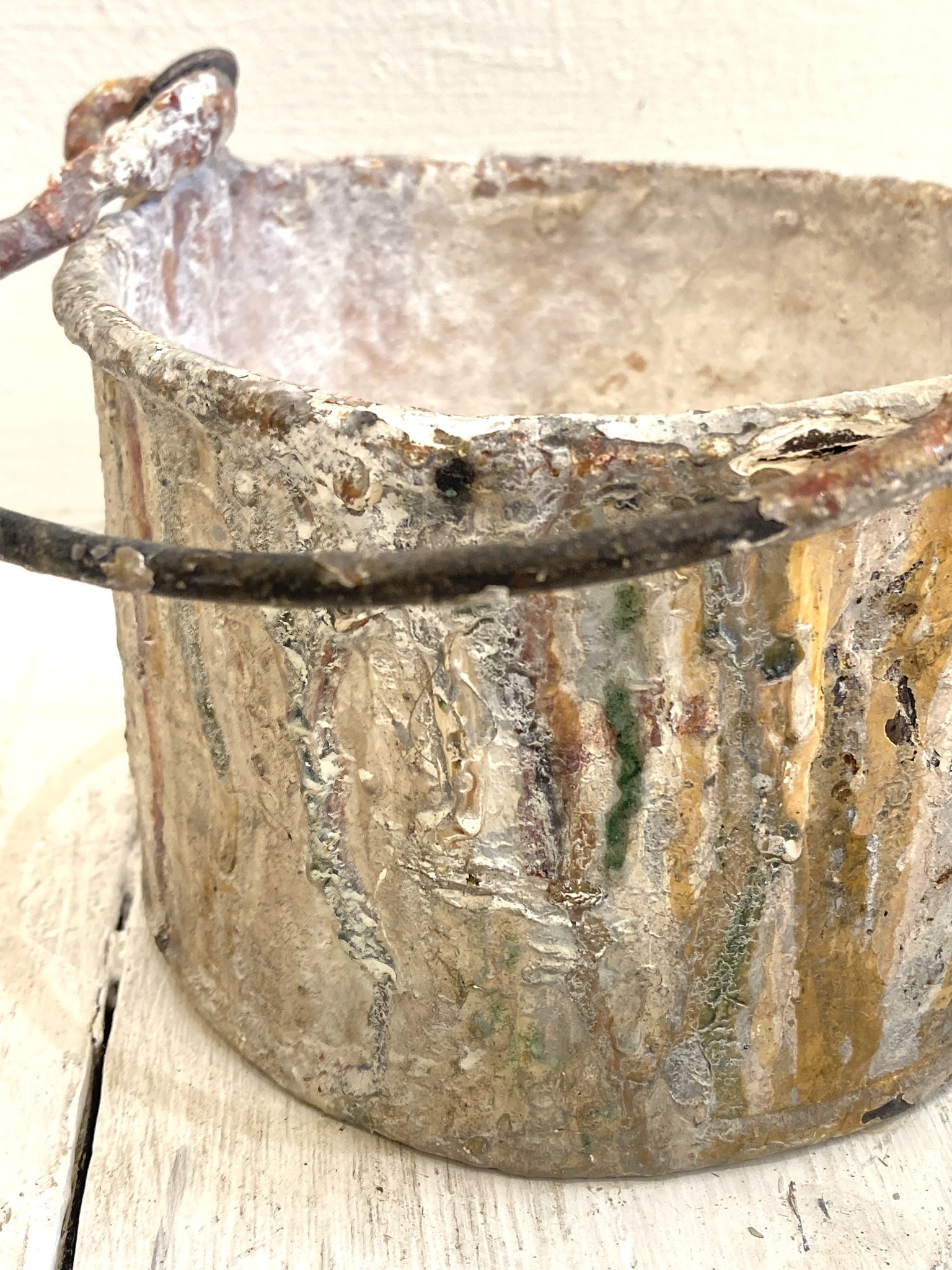 A wonderful old paint kettle encrusted with layers & layers of old paint, making this almost a piece of art in it's own right! So textural and decorative, this is perfect for planting or rustic storage.